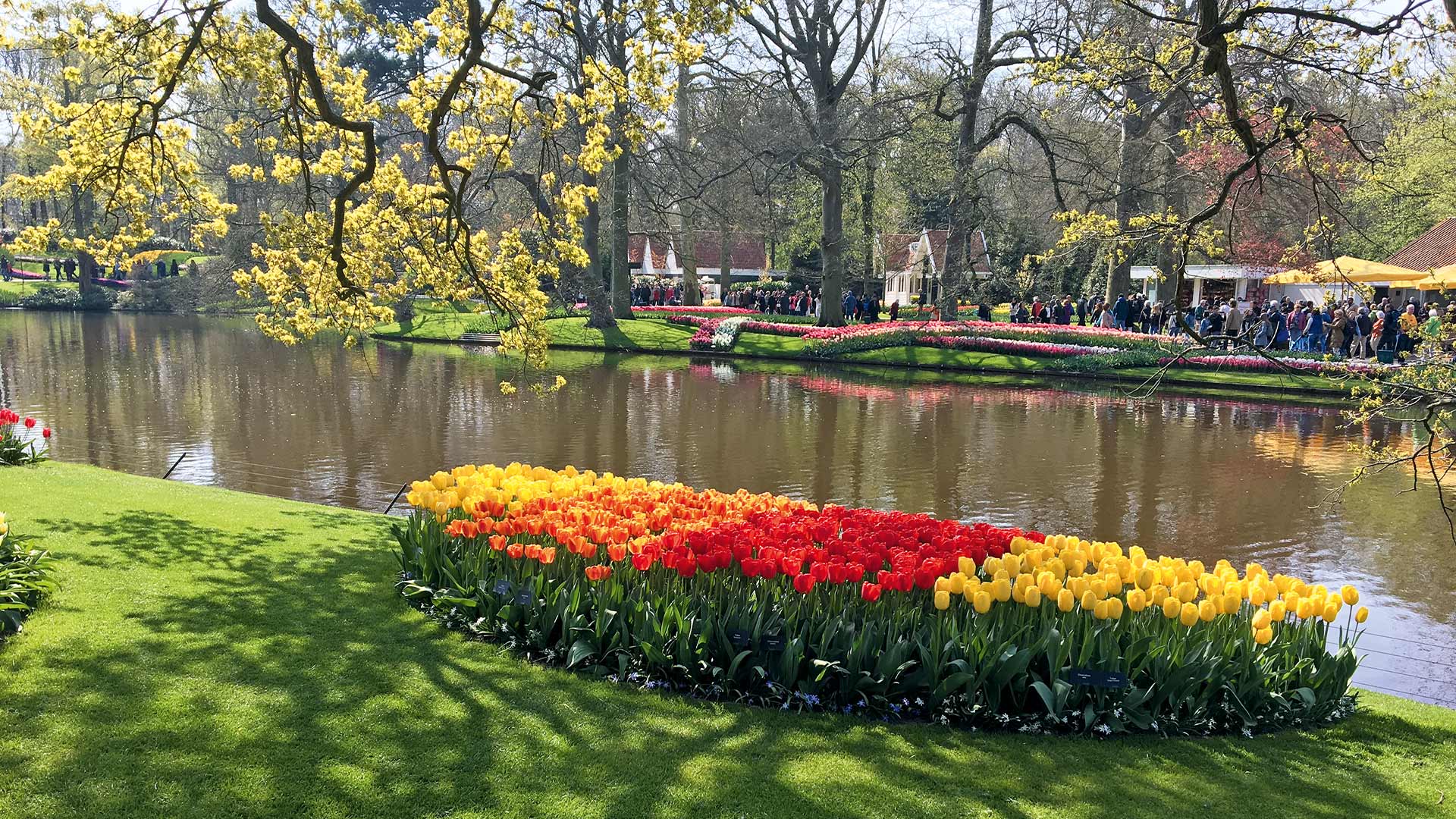 Mehr als 7 Millionen Blumenzwiebeln blühen zwischen jahrhundertealten Bäumen und an den Teichen in dem 32 Hektar großen Park. In verschiedenen überdachten Pavillons werden außerdem die schönsten Zierpflanzen gezeigt, die Holland zu bieten hat.